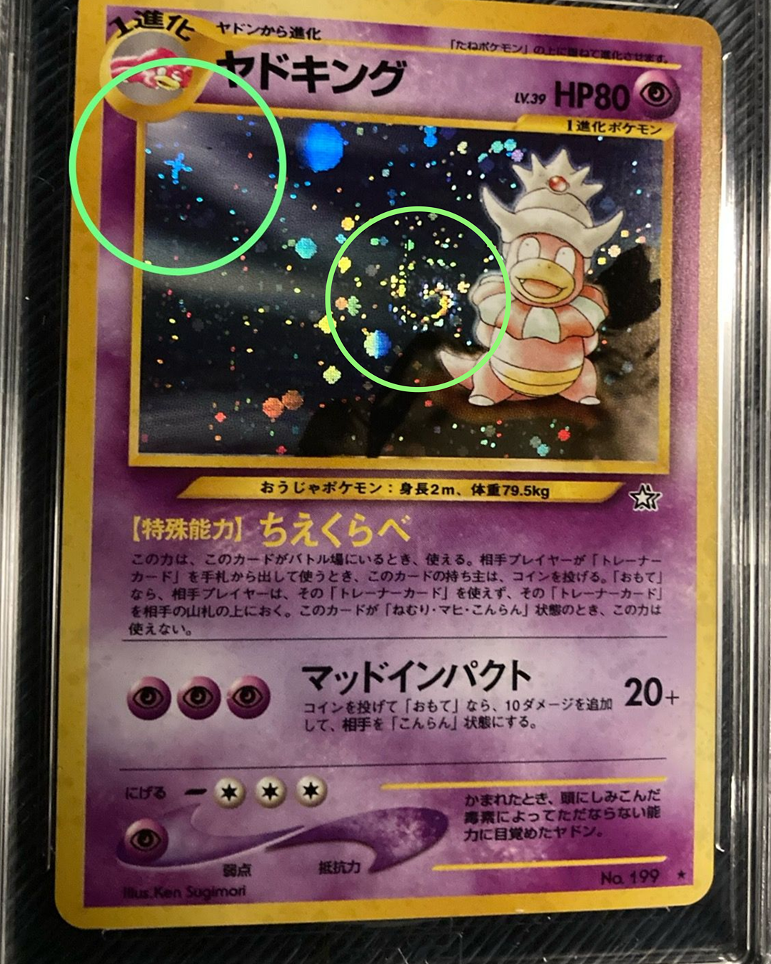 I've been obsessed ever since. Every time I tilt a vintage Japanese holo and that circle-and-line shape appears, it still gives me the same little thrill. And yet… even the collectors who've noticed it over the years rarely talk about it. No buzzing forums, no guides, no nicknames. Why? Maybe because it's so subtle, so easy to dismiss as a printing quirk.